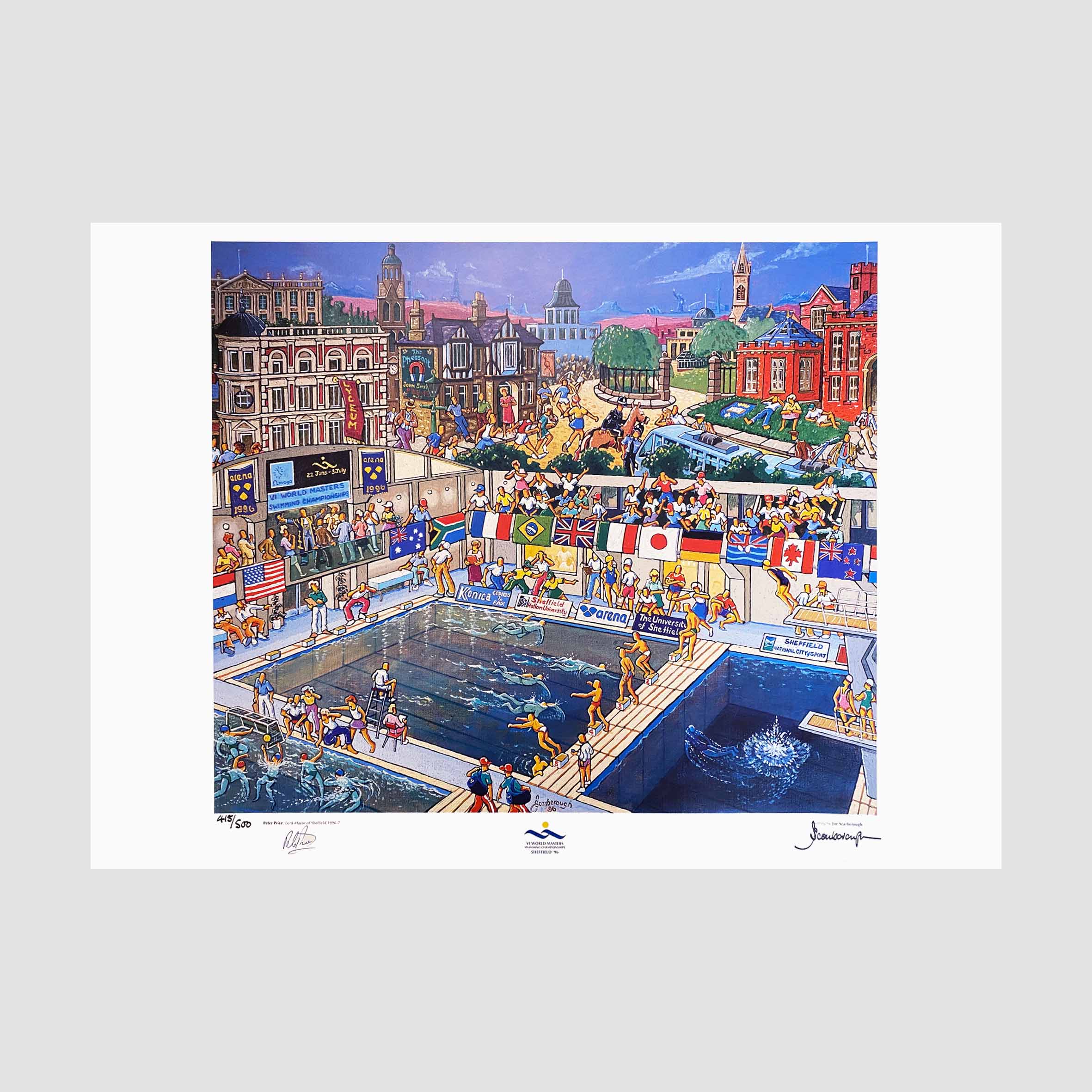 Joe Scarborough Signed Art Print VI World Masters Swimming Championship Sheffield 1996 415/500 Signed by Peter Price